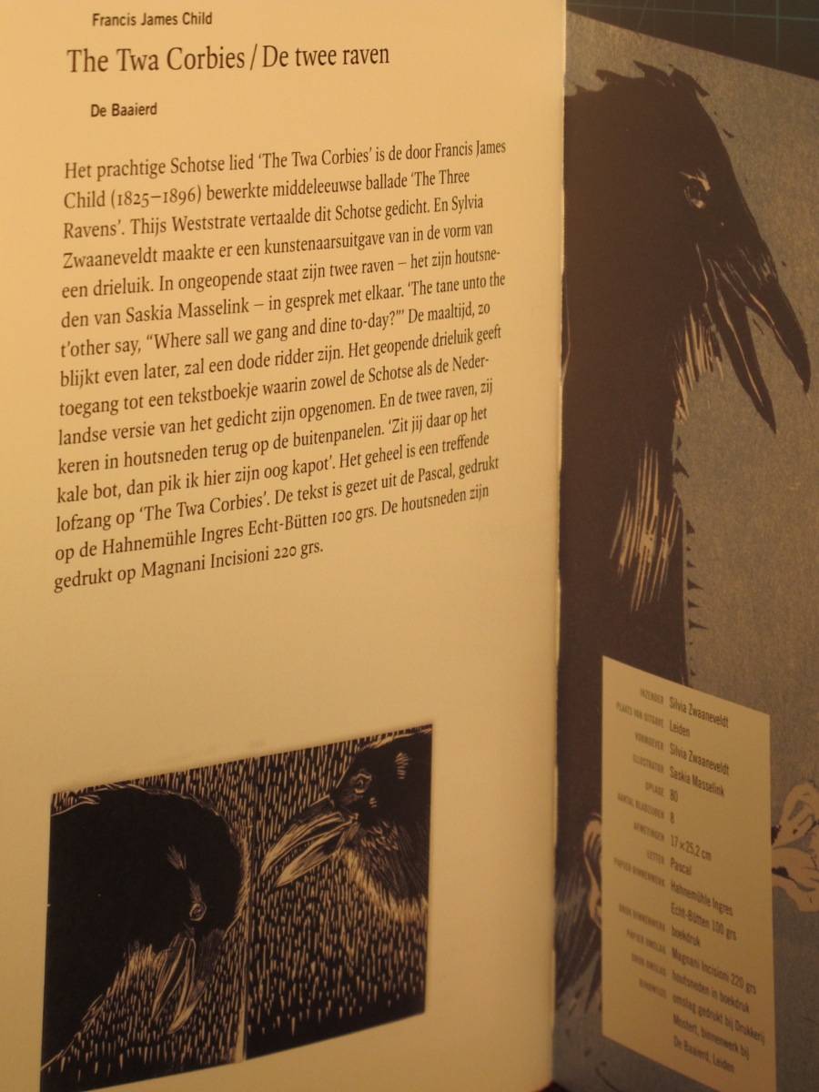 Op 30 november vond Mooi Marginaal plaats in Haarlem. Het is de uitverkiezing van de mooiste marginale uitgaven van 2010 en 2011. Mijn twee inzendingen hebben beide een plek gekregen; dichters van het laatste oordeel, gemaakt voor de Lakenhal en de twee raven gemaakt met Saskia Masselink en Thijs Weststrate.