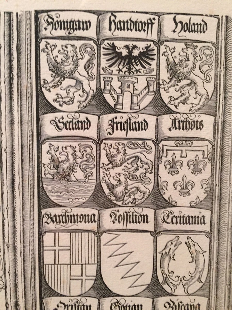 Vijfhonderd jaar geleden leverde Albrecht Dürer een bestelling af in dertigvoud, bij keizer Maximiliaan van Oostenrijk. (De keizer van de kroon op de Westertoren). Het was een drukwerk, een relatiegeschenk. Eén van deze indrukwekkende en imponerende drukken, hangt nu compleet gerestaureerd, in het Statens Museum for Kunst in Kopenhagen.